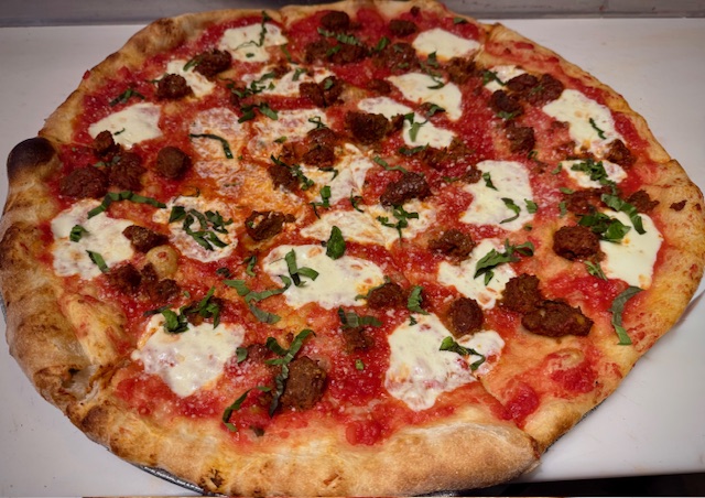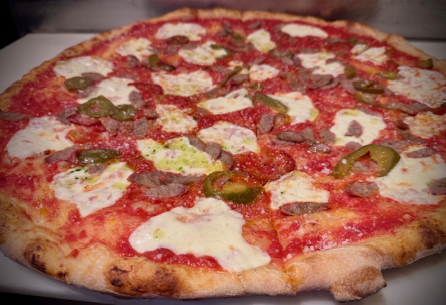red sauce, fresh mozzarella, sausage, cherry peppers, Romano cheese