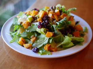 sage roasted butternut squash, dried cranberries, goat cheese, spiced toasted pumpkin seeds over mixed greens with Apple cider vinaigrette